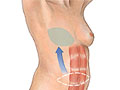 • TRAM (transverse rectus abdominis muscle) flap may be done as either a pedicle flap or a free flap. The surgeon takes muscle and tissue from the lower belly and moves it to the chest area. This reduces the amount of fat and skin in the lower belly and results in a "tummy tuck."