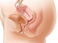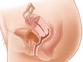 A rectocele occurs when the end of the large intestine (rectum) pushes against and moves the back wall of the vagina. An enterocele (small bowel prolapse) occurs when the small bowel presses against and moves the upper wall of the vagina. Rectoceles and enteroceles may develop if the lower pelvic muscles become damaged by labor, childbirth, or a previous pelvic surgery or if the muscles are weakened by aging. A rectocele or an enterocele can be present at birth (congenital), though this is rare.
